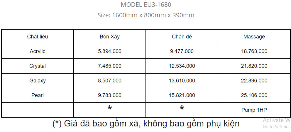Bồn tắm Euroca EU3-1680