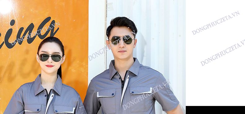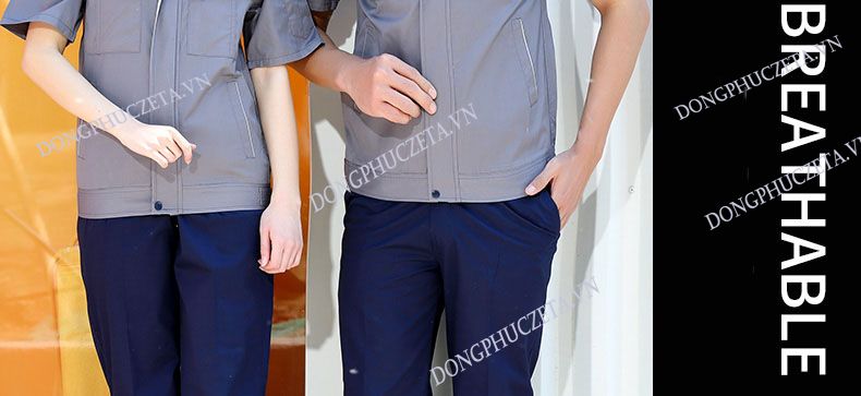 Quần áo đồng phục nhân viên kỹ thuật kỹ sư điện nước cộc tay màu ghi sáng